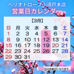2026/03/05 ようやく春を感じられる気候になってきましたね。 3月は新生活が始まる準備をされる方も多いのではないでしょうか。 体調管理に当店をお役立ていただき、素晴らしいスタートを迎えませんか。 スタッフ一同心よりお待ちしております。